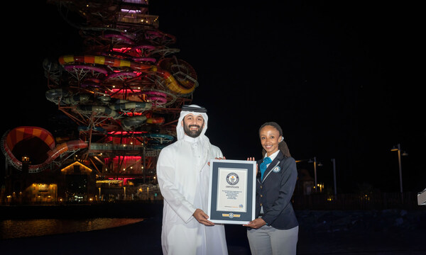 LUSAIL, Qatar, Dec. 3, 2024 /PRNewswire/ — Qetaifan Projects, a subsidiary of Katara Hospitality, proudly announced that "The RIG 1938" was officially recognized by Guinness World Records™ for two records the first one being the tallest water slide, standing at 76.309 metres, and the second award is the first of its kind to feature 12 water slides in one tower. The announcement was made by H.E Sheikh Nasser bin Abdulrahman Al-Thani, Managing Director and Chairman of Qetaifan Projects, during a press conference held at the shores of Meryal Water Park on Qetaifan Island North. The event was attended by the Qetaifan Projects team, Rixos Hotel representatives, esteemed dignitaries, investors, and media professionals.